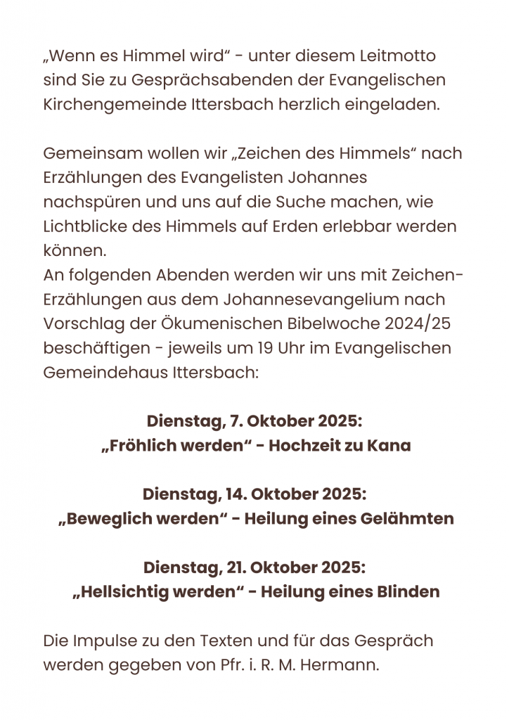 Mit einer Anmeldung im Pfarramt (ittersbach@kbz.ekiba.de, 07248 932420) bis spätestens 18. September 2025 erleichtern Sie uns die Arbeit.